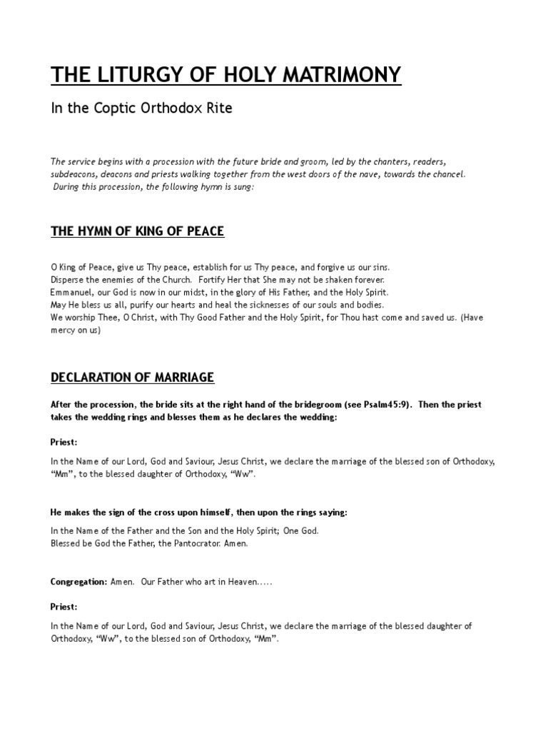 The Liturgy Of Holy Matrimony In The Coptic Orthodox Rite Pdf Eastern Orthodox Church Rebecca