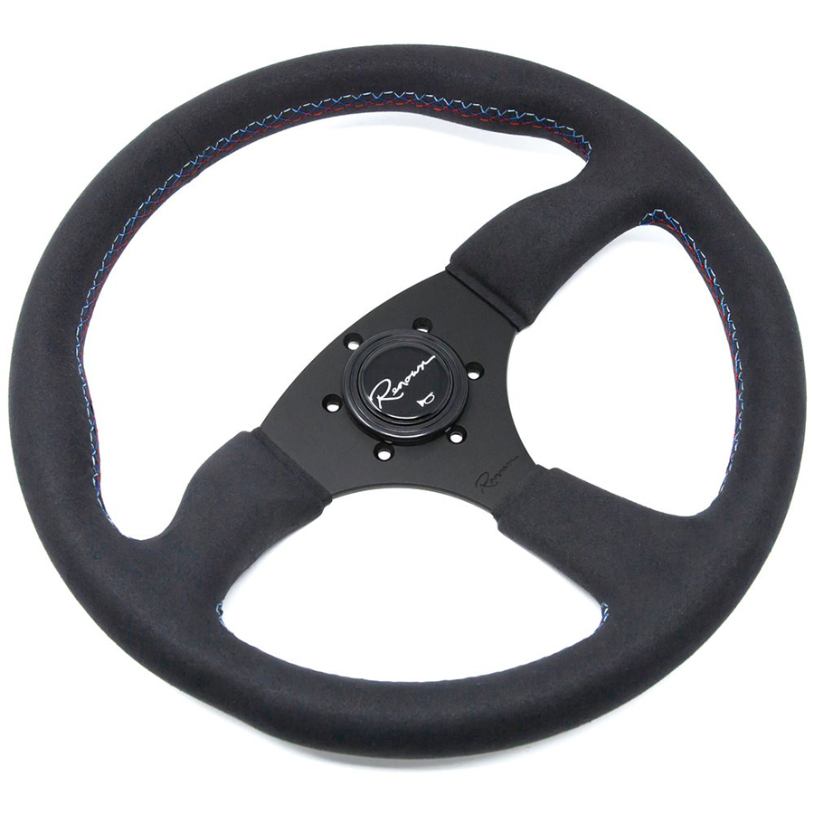 Evasive Motorsports Renown 130r Motorsport Steering Wheel 350mm Black Spoke Alcantara Suede Tricolor Stitch