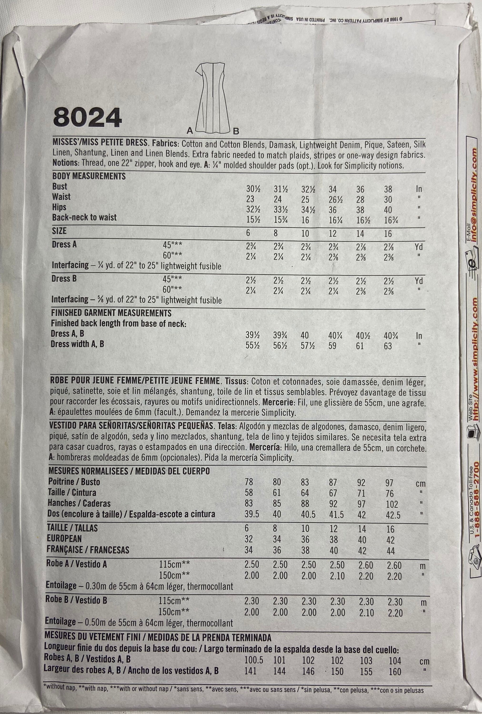 Simplicity 8024 Women S Sewing Pattern Petite Dress 6 16 Etsy